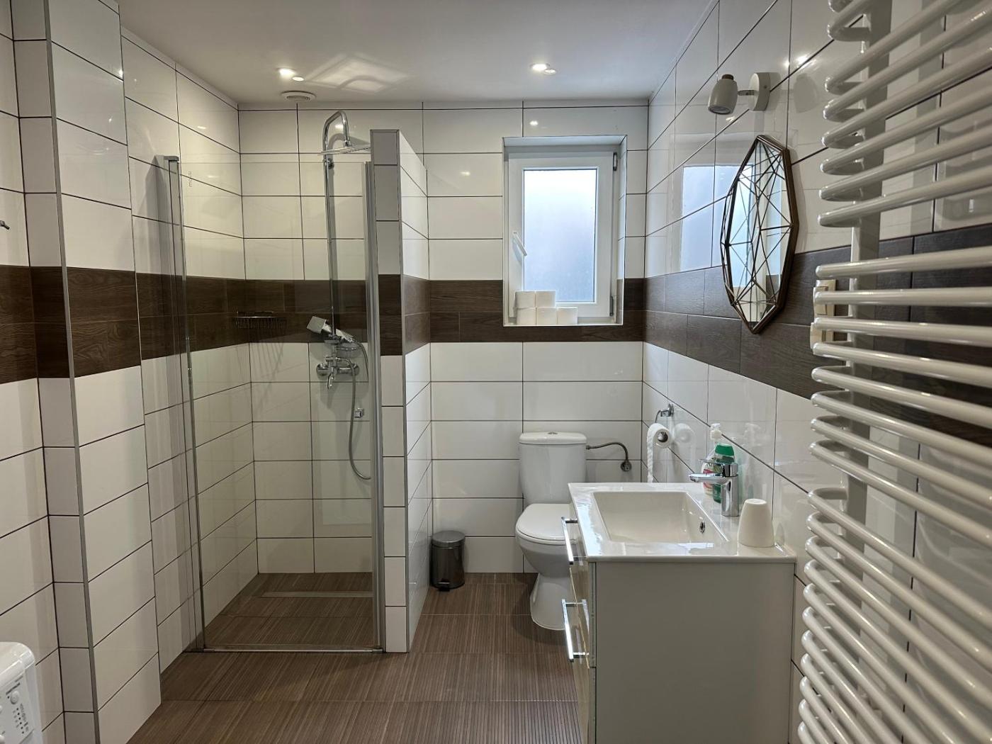 Apartament z 1 sypialnią. This apartment comes with 1 bedroom, a kitchen and 1 bathroom with a walk-in shower and a hairdryer. In the kitchen, guests will find a stovetop, a refrigerator, kitchenware and an electric kettle. This apartment has a washing machine, a tiled floor, a flat-screen TV and outdoor furniture. The unit has 1 bed. Apartament - 2 osobowy. ;