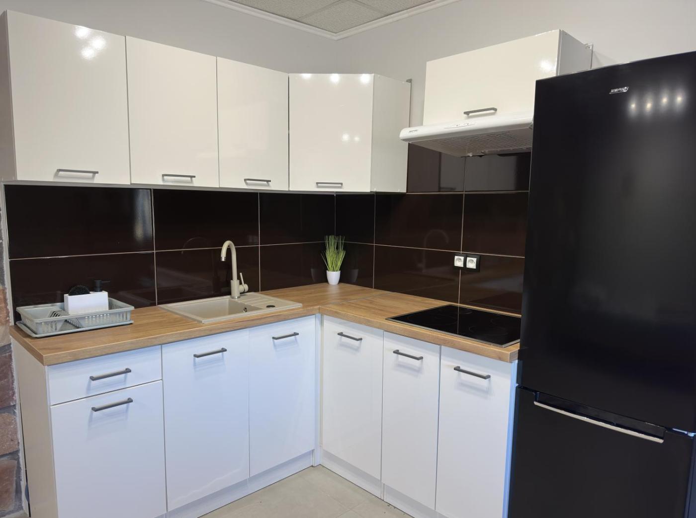W niektórych opcjach zakwaterowania znajduje się także kuchnia z lodówką i płytą kuchenną.